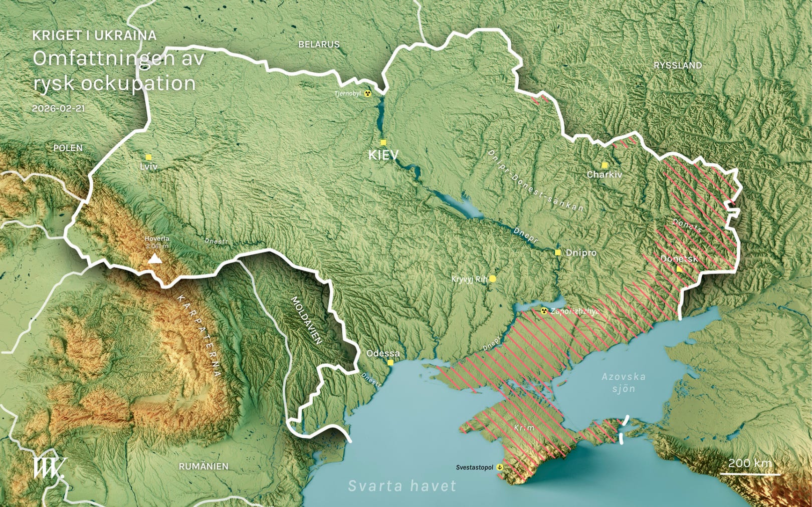 Så mycket av Ukraina kontrollerar Ryssland idag. 🇺🇦 Efter fyra år av fullskaligt krig håller Ryssland omkring en femtedel av Ukrainas yta. Men bakom siffran döljer sig en brutal verklighet där frontlinjen rör sig i snigelfart. Här är vad du behöver veta.